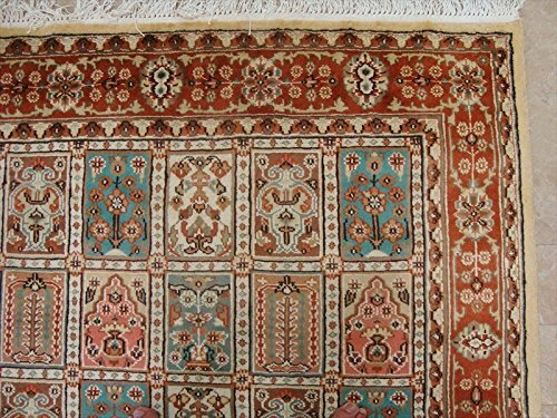 Exclusive Bakhtiar Floral Blocks Rectangle Area Rug Hand Knotted Wool Silk Carpet (8 x 5)'. For the perfect combination of unique, beautiful style and high-quality durability, the attention to detail on these beautiful contemporary rugs is noticed as soon as you lay eyes on the carpet. The rug to appear dull when viewed from one side, and shiny from the other side. Please view the picture at the bottom to see the bright side of the rug. This rug can help brighten up a room if you do not get much sunlight. Simply put the bright side facing the seating area and it will make the room appear surprisingly bright. Rectangle shape with excellent medallion pattern. Ideal choice for the modern family room. Blended color schemes match well with all styles of furniture and art. Give your home an elegant touch with this amazing rug carpet. Great for any decor, adds texture to the floor and complements any decor. 100% Genuine Hand Knotted-Rug not hand tufted.