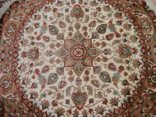 Wow Ivory Round Exclusive Hand Knotted Rug Wool Silk Carpet (5 x 5)'. Its soft texture and timeless design make it ideal to enhance any space where it is placed. For the perfect combination of unique, beautiful style and high-quality durability, the attention to detail on these beautiful contemporary rugs is noticed as soon as you lay eyes on the carpet. High quality Silk causes the rug to appear dull when viewed from one side, and shiny from the other side. This is a 100% Genuine Hand Knotted-Rug not hand tufted like other sellers.