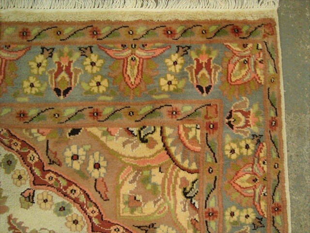 Rare Medallion Floral Hand Knotted Rug Carpet Silk Wool (7.10 x 4.10)'. Its soft texture and timeless design make it ideal to enhance any space where it is placed. This is a beautiful Pestal Floral Hand-knotted fine oriental area rug. The rug appears dull when viewed from one side, and shiny from the other side. Please view the picture at the bottom to see the bright side of the rug. This rug can help brighten up a room if you do not get much sunlight. Simply put the bright side facing the seating area and it will make the room appear surprisingly bright. This is a 100% Genuine Hand Knotted-Rug not hand tufted like other sellers.