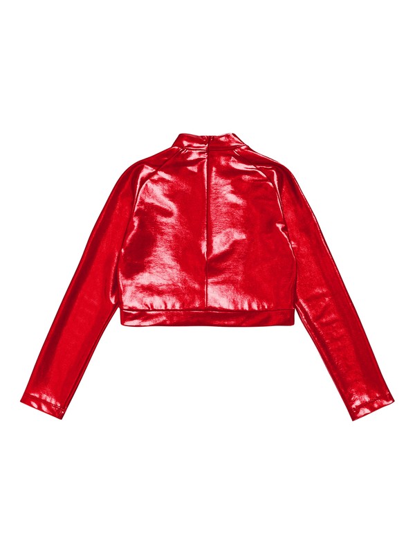 Girls Metallic Sequins Crop Top Long Sleeve Shirt Turtleneck Hip Hop Dance Tops