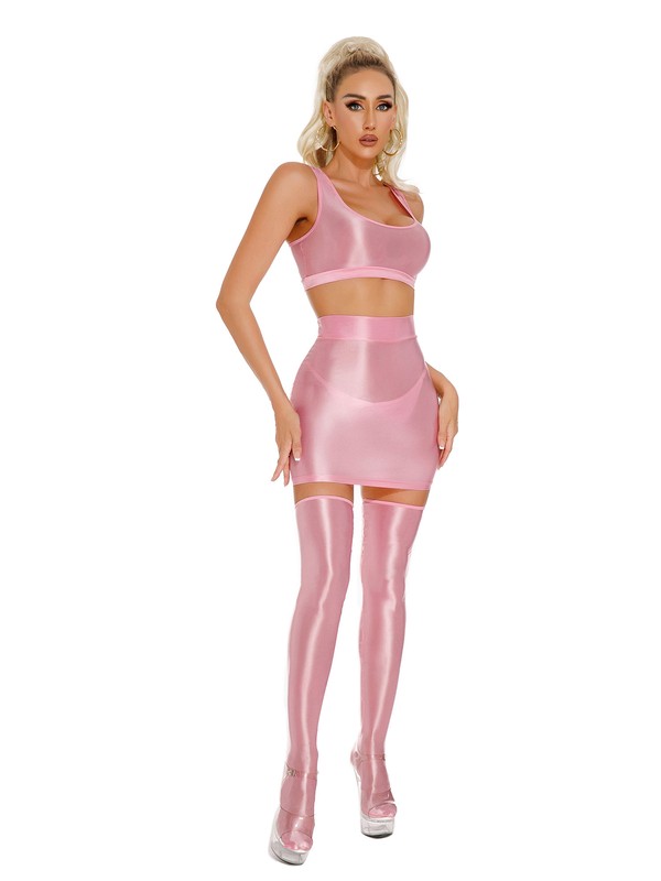 Set Include: 1Pc Crop Top, 1Pc Skirt, 1 Pair Stockings