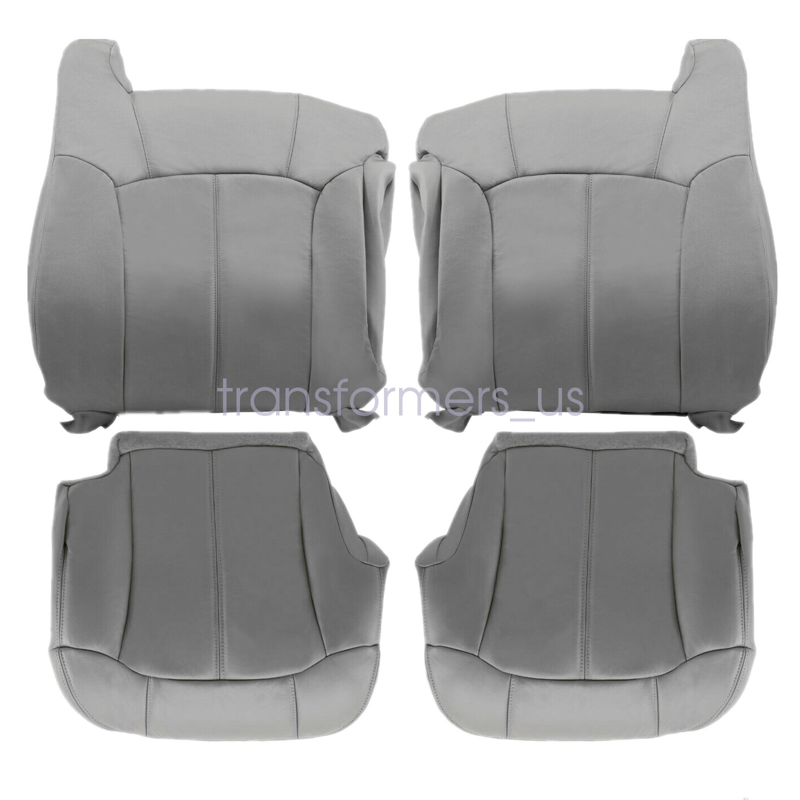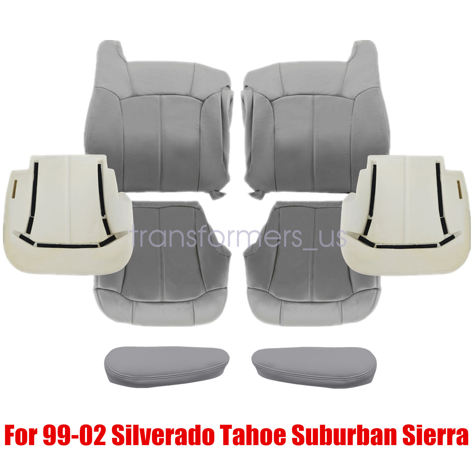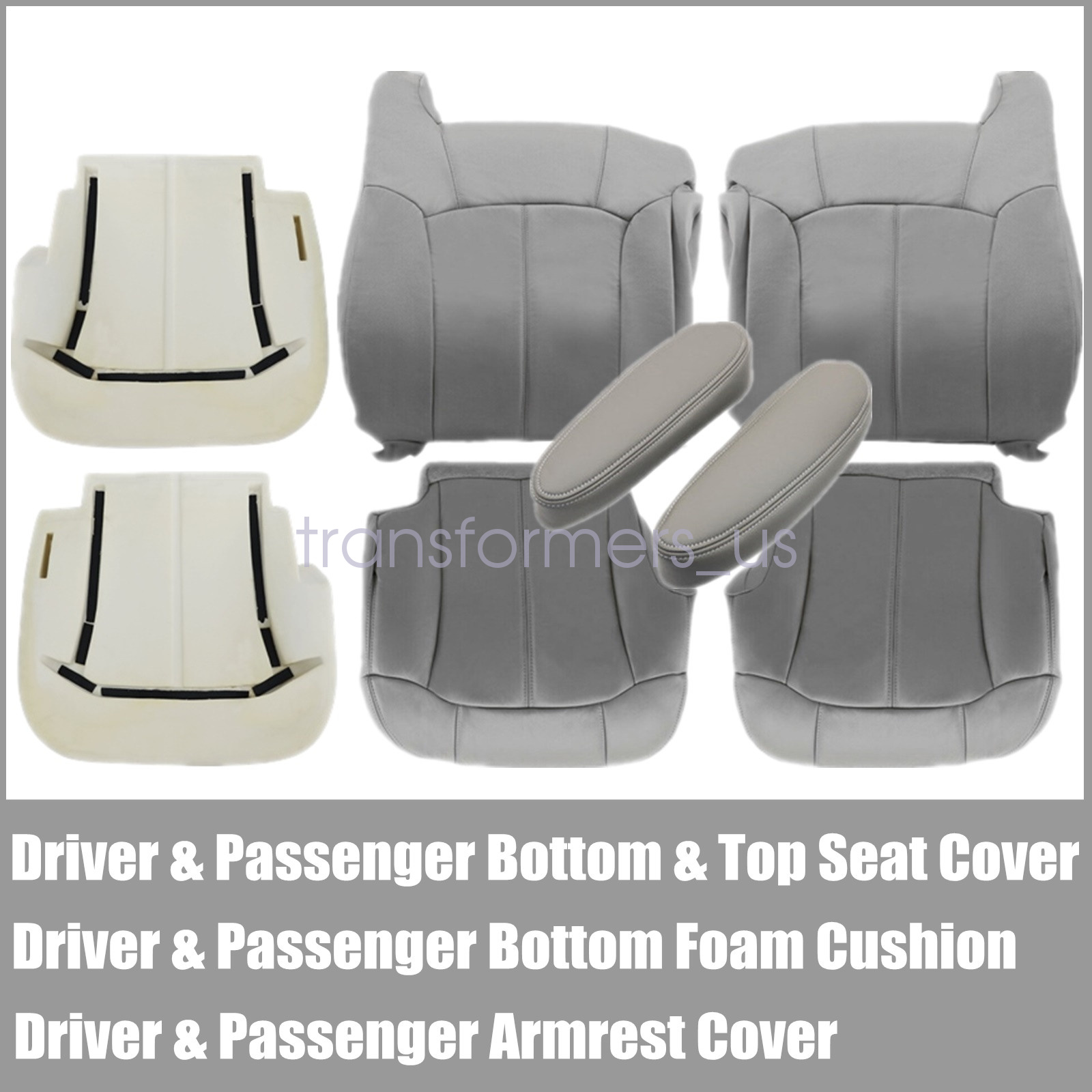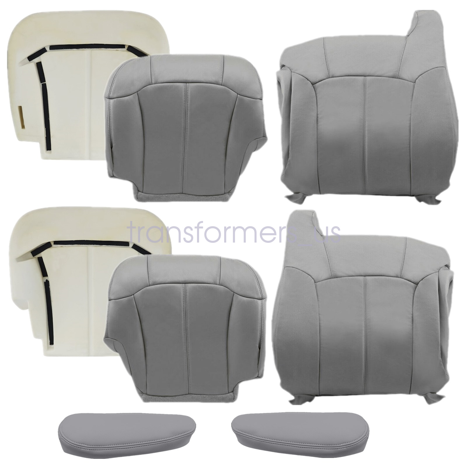 For 1999 2000 2001 2002 Chevy Silverado Suburban Tahoe GMC Sierra Driver & Passenger Side Replacement Leather Seat Cover & Foam Cushion & Armrest Cover Pewter Gray Color Code 122 or 922