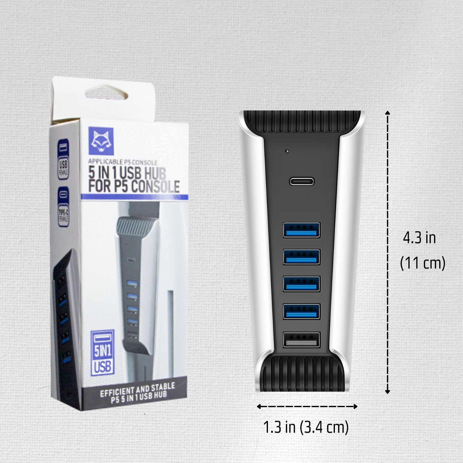 Every passionate gamer knows the importance of a flawless gaming setup and that every element of your gaming environment needs to be in perfect sync. TNP's USB hub for Playstation 5 console is a game-changer meticulously crafted for the dedicated gamer. Designed as the ultimate USB hub expander for PS5 accessories, our hub seamlessly integrates with your PS5 controller, camera, mouse, keyboard, and more, setting a new benchmark in a USB hub for PS5 accessories. This hub is perfect for PS5 UHD and digital editions and is meticulously crafted from high-grade ABS material. It offers protection with a snug back foam cotton, ensuring it's the ideal USB port for PS5 accessories. The hassle of alternating between devices is eliminated, thanks to its ability to simultaneously support multiple connections- equipped with 4 high-speed USB 2.0 ports, a swift USB type C 3.1 port, and a dedicated charging port. Beyond its technical prowess, it stands out as the best USB port expander for PS5, with a straightforward plug-and-play feature that swiftly gets you into the action, accentuated by a blue light indicator. Beyond functionality, its elegant design makes it an essential USB hub for Playstation 5 accessories and an exquisite gift for any PS5 aficionado.Feature: