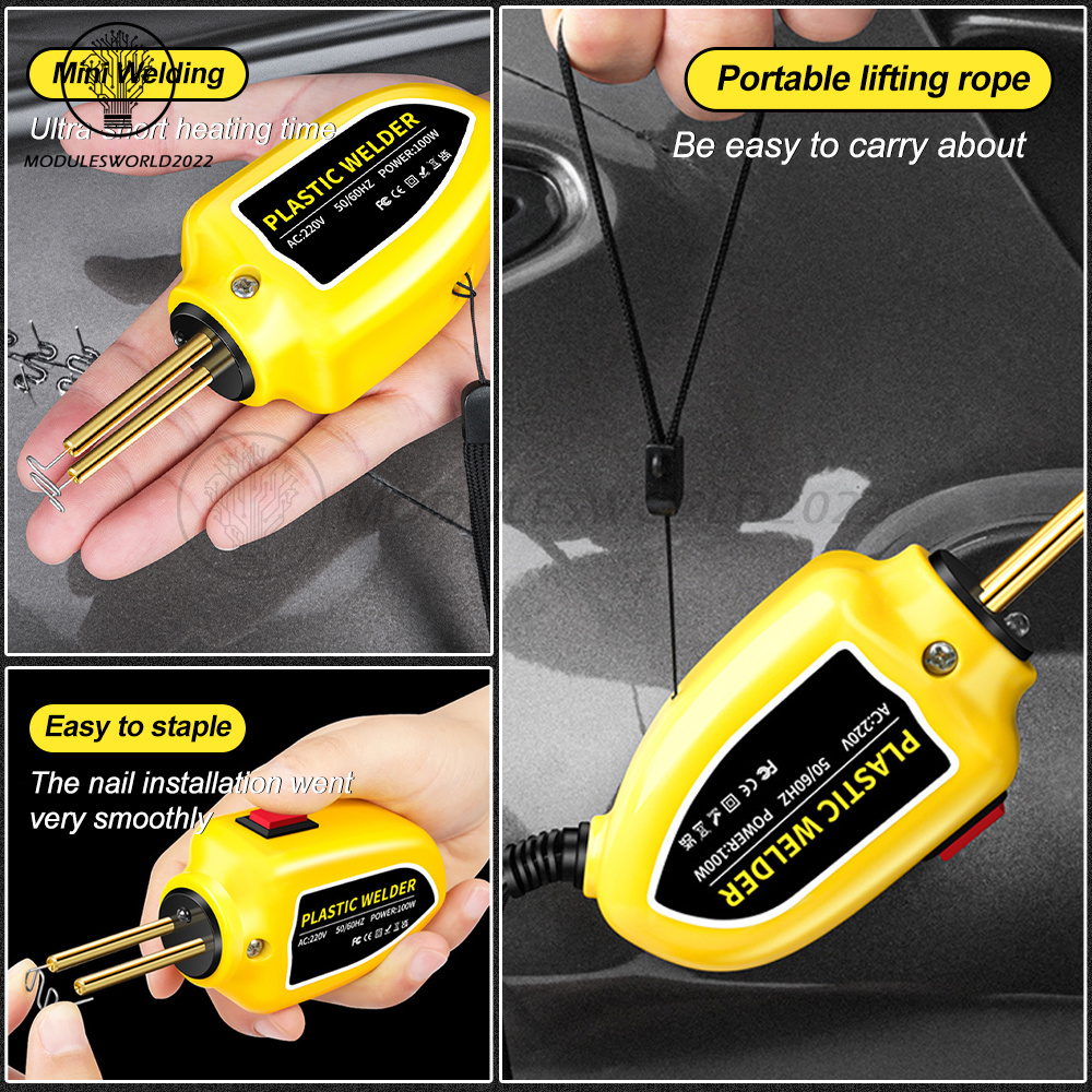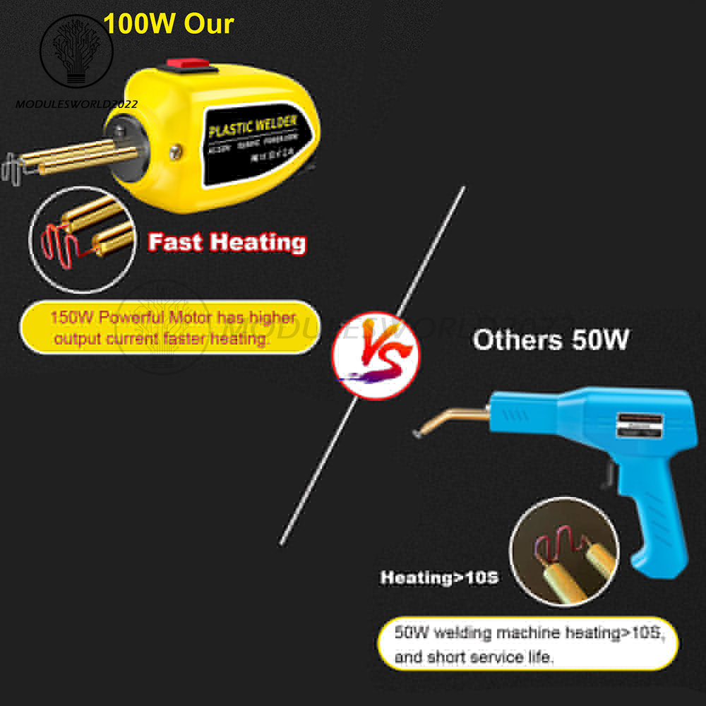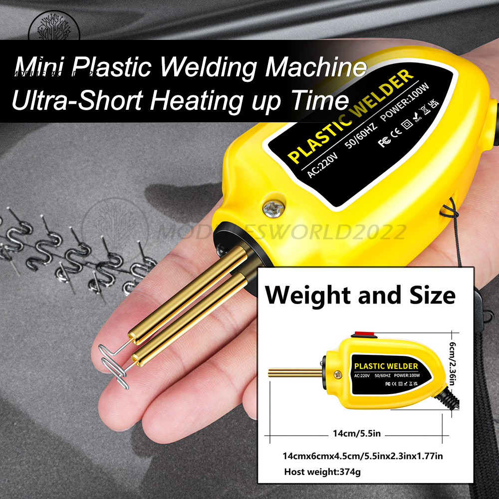 1.MULTIPURPOSE APPLICATION: Our 100W plastic welding machine is suitable for repairing and reinforcing automotive plastic parts, such as bumpers, dashboards, headlight brackets, plastic rings, and daily life plastic products.