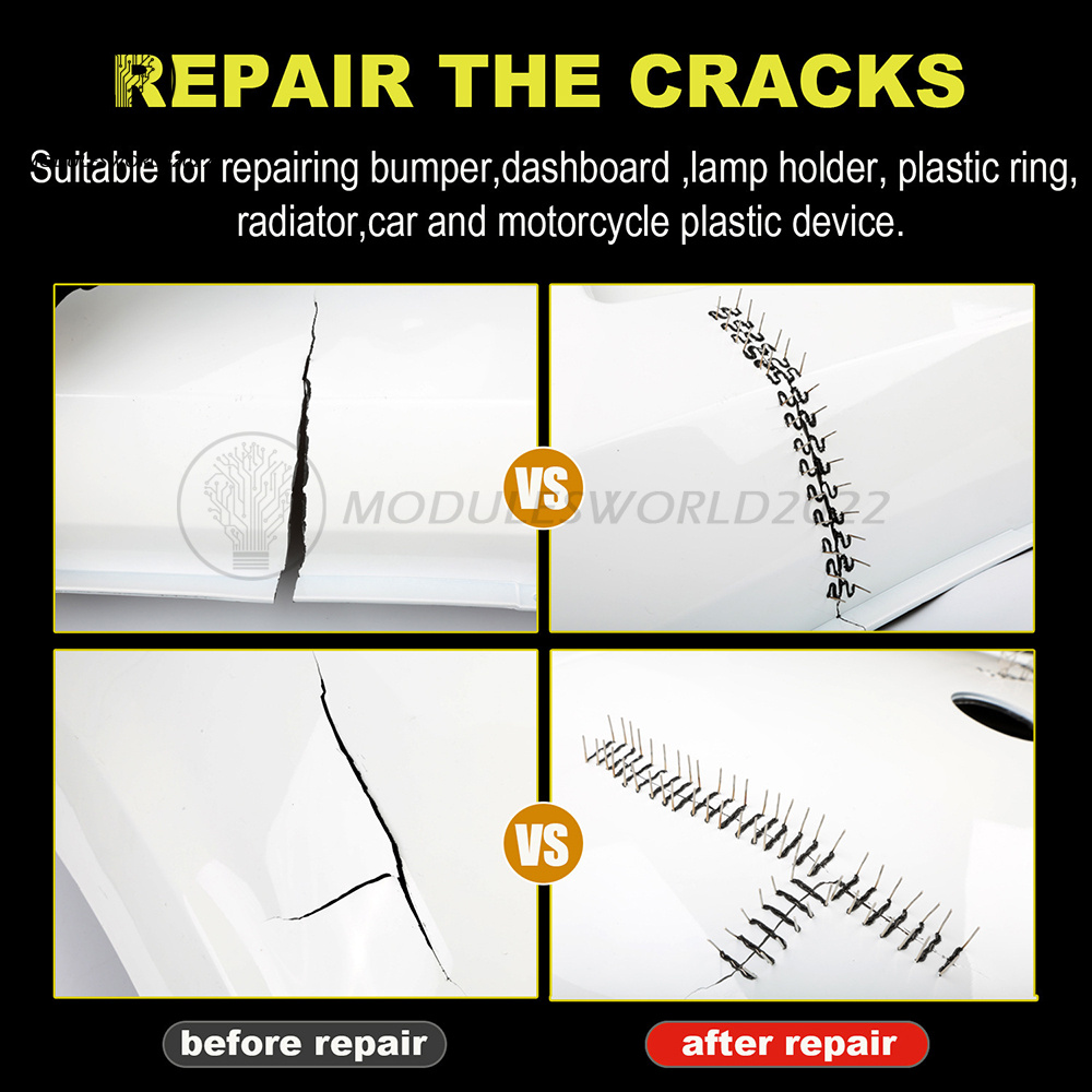 2.EFFICIENT - EASY TO USE: This hot melt nail bumper repair kit heats up specially designed nails and inserts them into cracked plastic, creating a strong and durable elastic force in minutes.