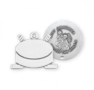 - Saint Christopher hockey puck shaped double sided medal-pendant.