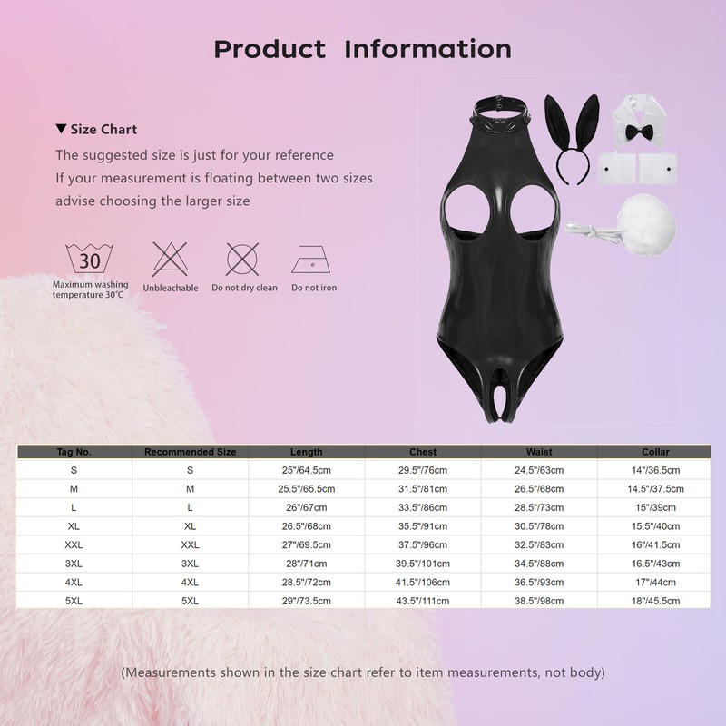 Set Include: 1Pc Bodysuit, 1Pc Headband, 1Pc Collar, 1 Pair Cuffs, 1Pc Tail