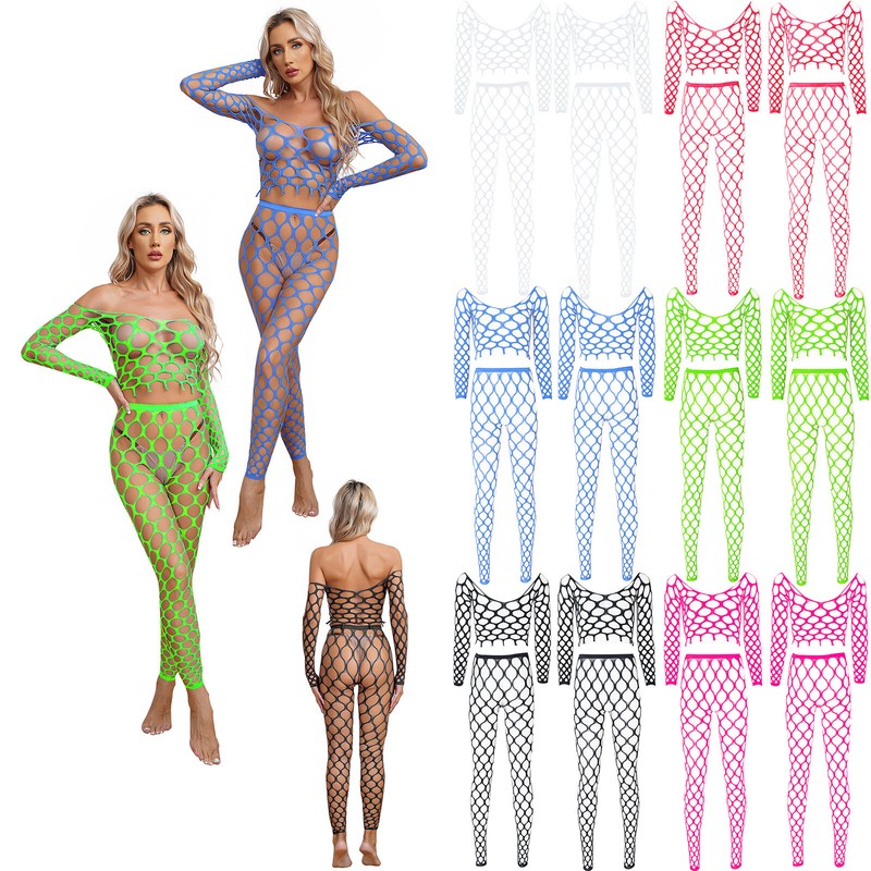 Off shoulder and long sleeves, hollow-out fishnet design that’s great to show off your body curves, snug-fitting.