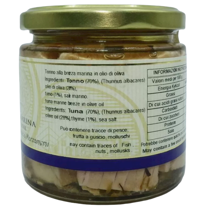 Tonno Siciliano Alla Brezza Marina in Olio D'oliva, 220 g con Timo e Sale Marino CODICE ARTICOLO: SBCAM009