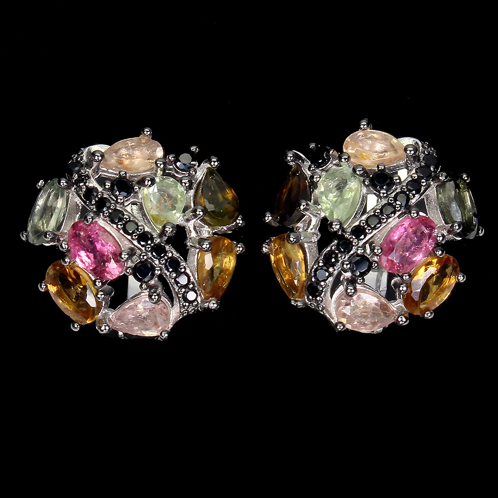 Unheated Pear Tourmaline 5x3mm Black Spinel 925 Sterling Silver Earrings