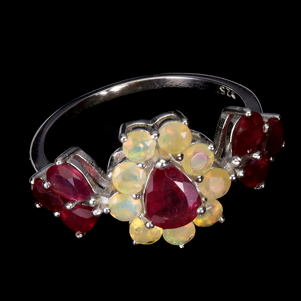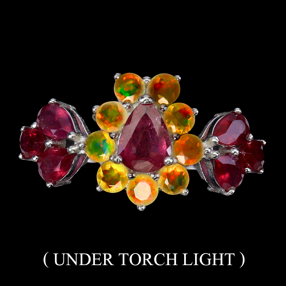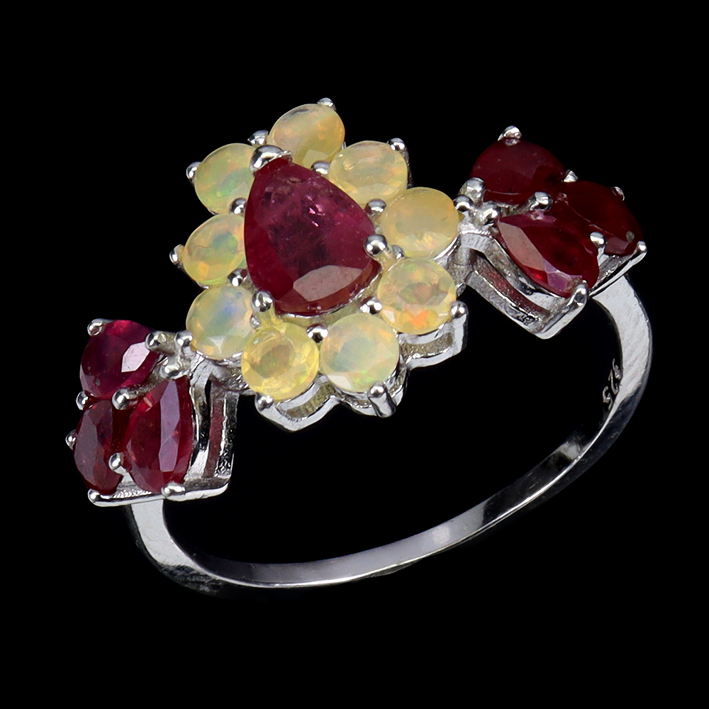 Heated Pear Ruby 7x5mm Fire Opal White Gold Plate 925 Sterling Silver Ring 9.5