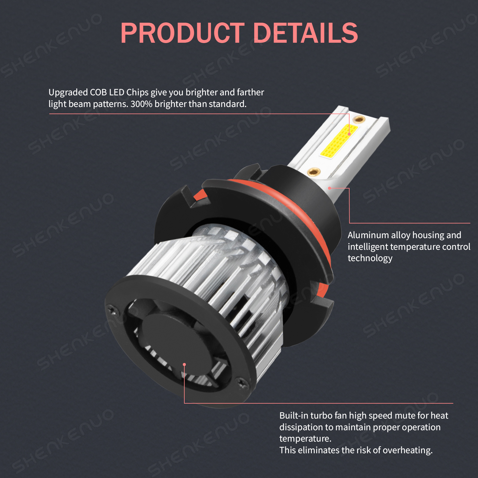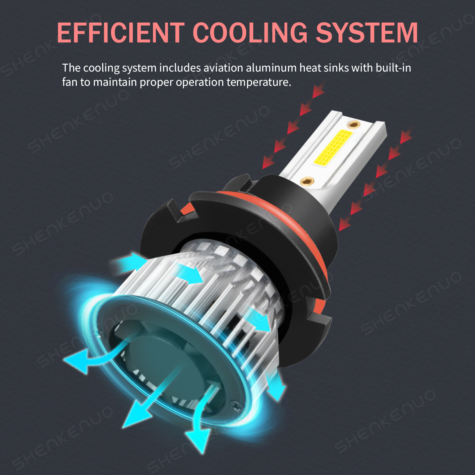 【Longer Lifespan】Adopt whole aviation aluminum body with top LED chips. Unique hollow carved heat sink design and 12000RPM turbo cool fan provide super cooling ability, which ensures a longer lifespan up to 30000 hours. Housing and fan works even in extreme situations,it always keep working and show a clear bright light.