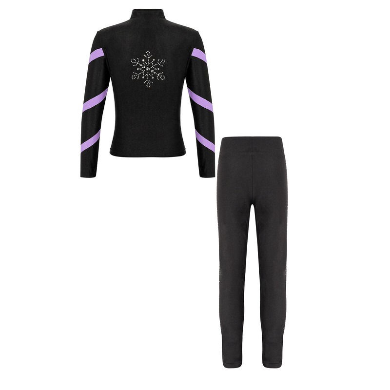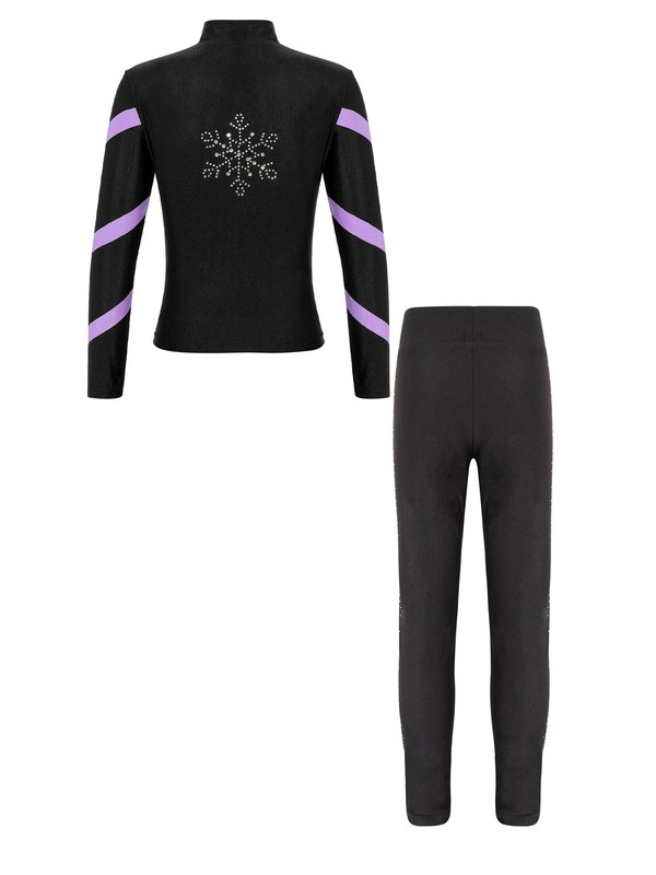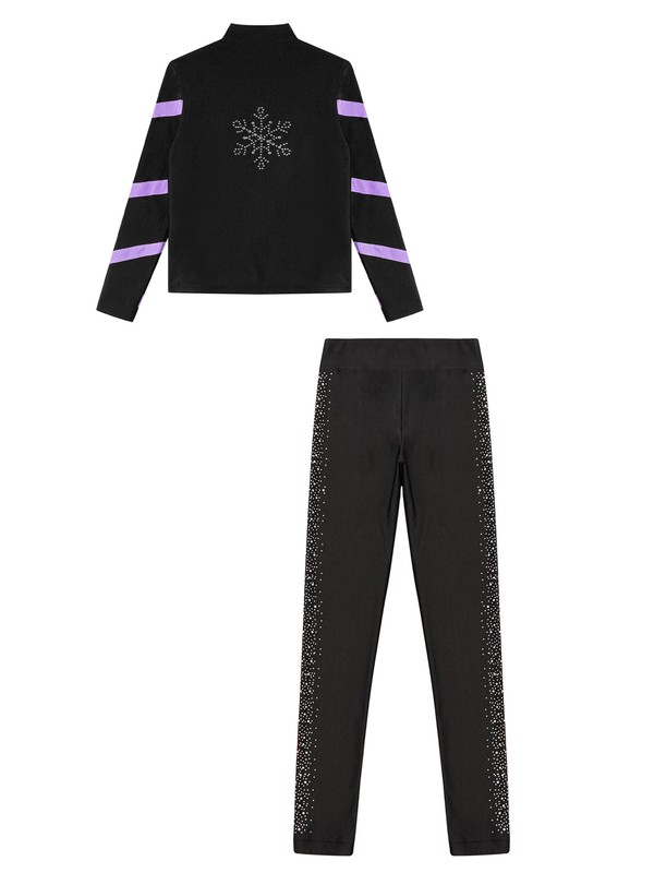 Matching elastic waistband leggings is adorned with sparkly rhinestones.