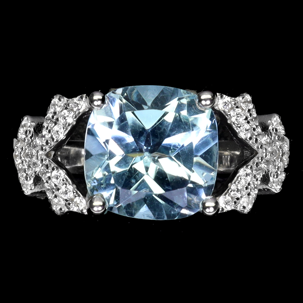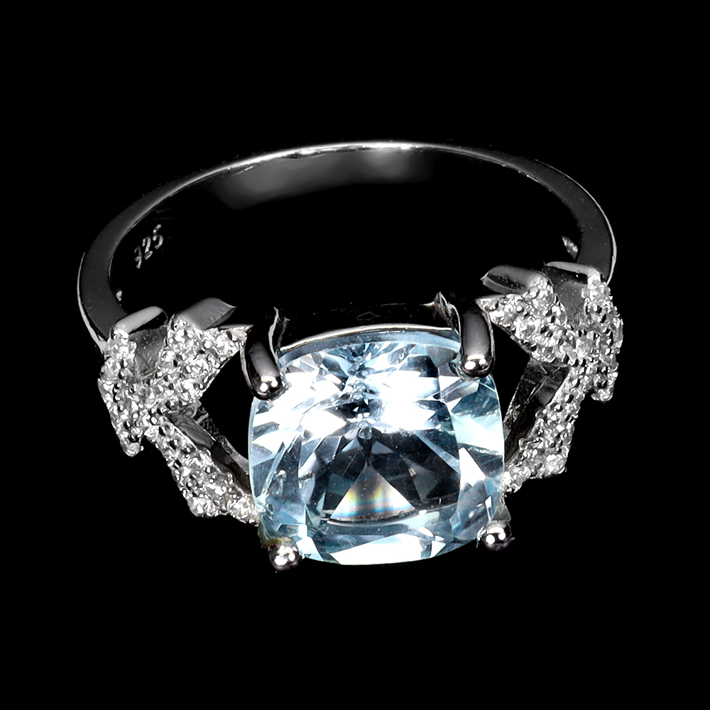 Irradiated Cushion Sky Blue Topaz 9mm Simulated Cz 925 Sterling Silver Ring 8.5