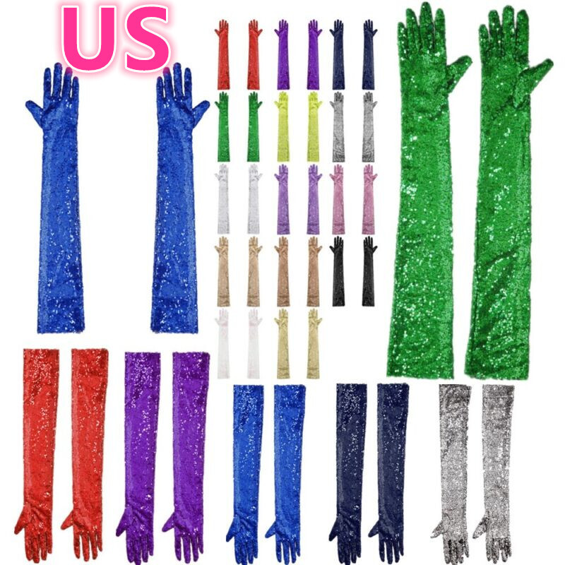 US Women's Glitter Gloves Long Opera Stretchy Elbow Length Mesh Mittens Gloves