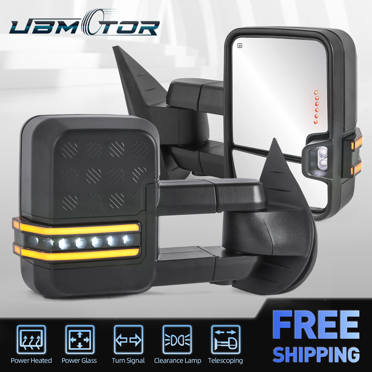 Power operate adjusted, Heated with turn signal lights,manual telescoping arms,runing lights,clearance lights