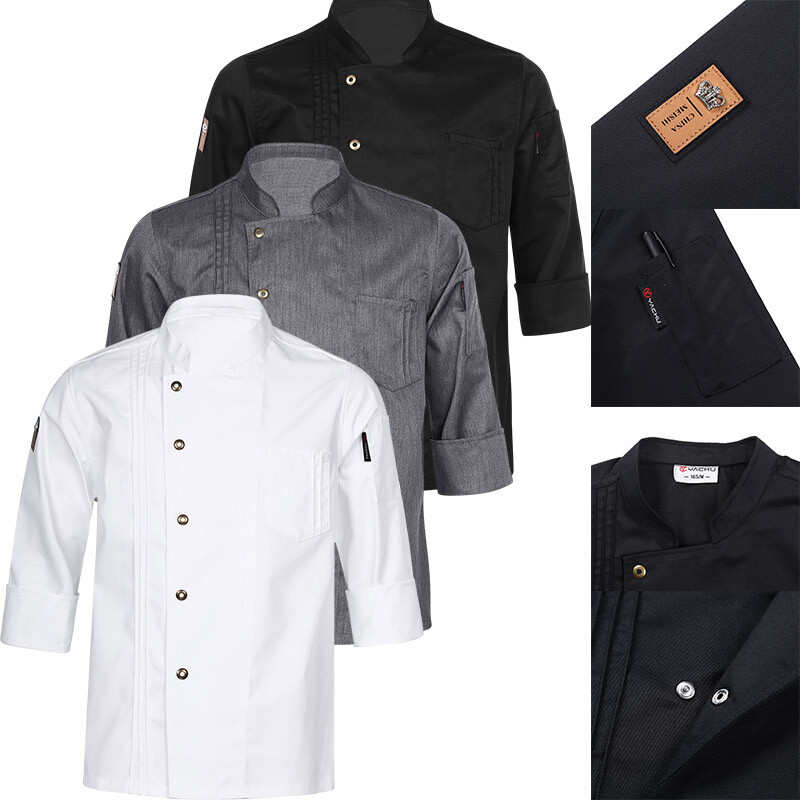 Restaurant kitchen chef coat for men and women, long sleeve can be rolled up to switch to 3/4 sleeves, simple but stylish.