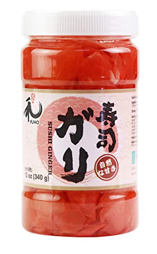 YUHO Pickled Sushi Ginger, Japanese Pink Gari Sushi Ginger Fat Free, Sugar Free, Kosher, BRC, No MSG, Low cal 12 oz