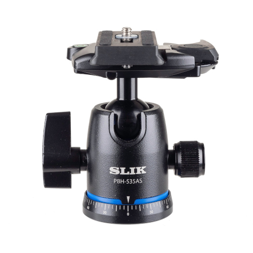 The compact professional SLIK PBH-535AS ball head is a low-profile, lightweight ball head for amateur and professional photographers. The 535AS single lever QR lock makes mounting and dismounting the camera fast and easy.