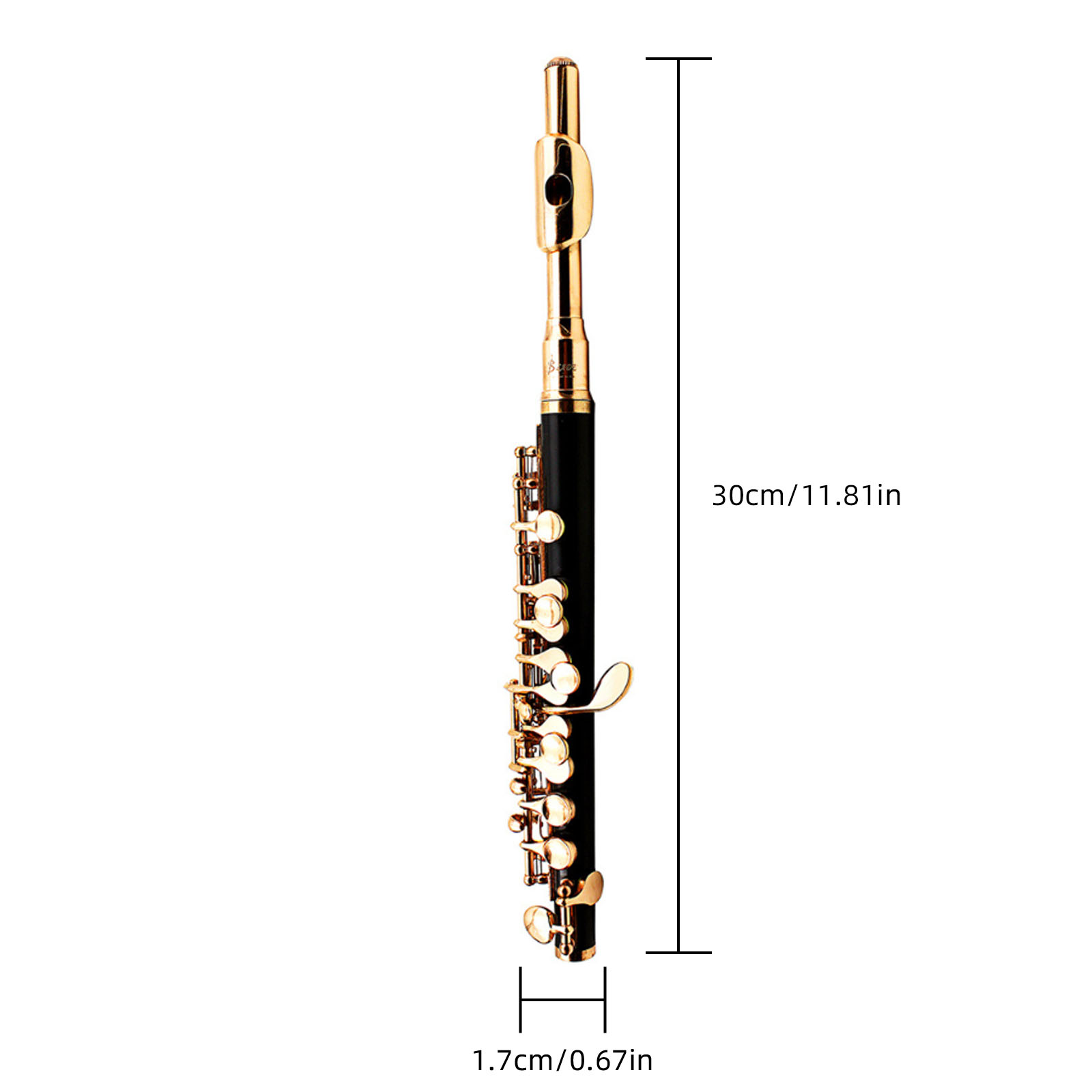 Plated Key of C Piccolo Bakelite Tube Body Half Size Short Flute with Padded Box Case Cork Grease Cleaning Stick Screwdriver Polish Cloth