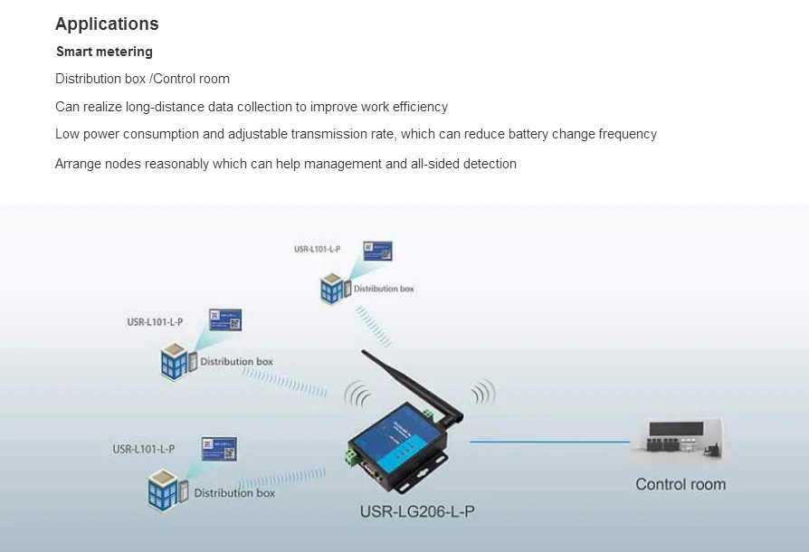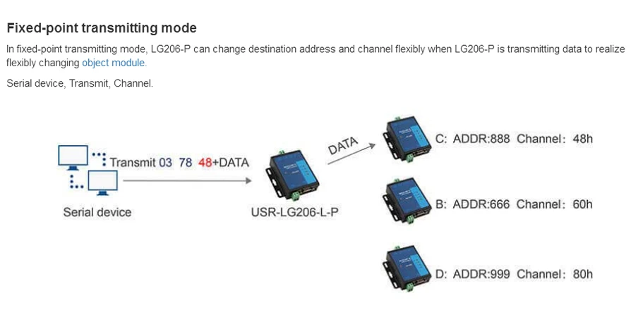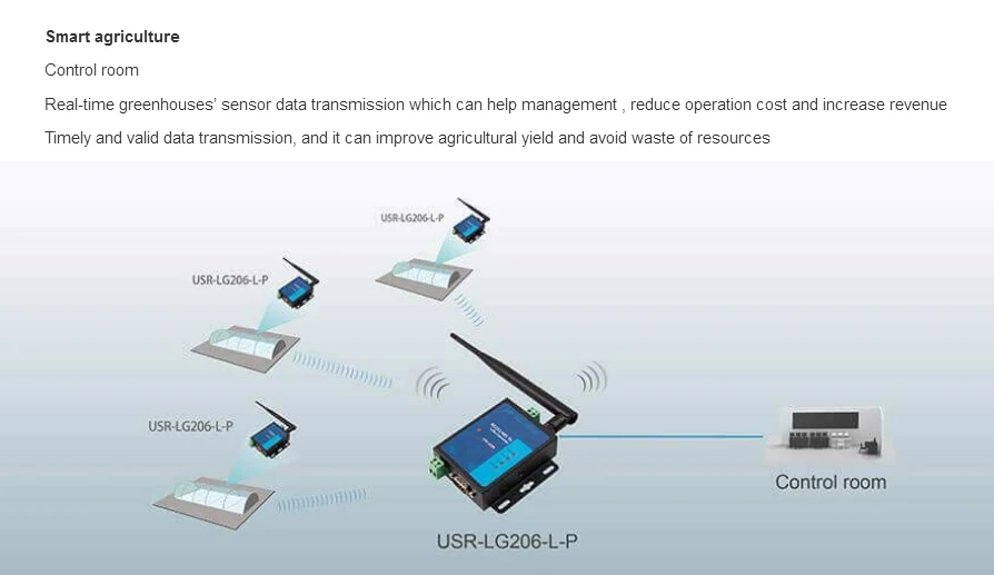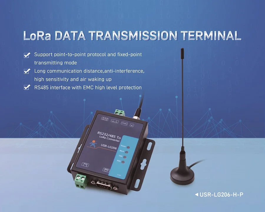 USR-LG206-H-P Serial RS232 RS485 to LoRa Converter Server Device (Point to Point) for Smart Metering Oil Field Agriculture