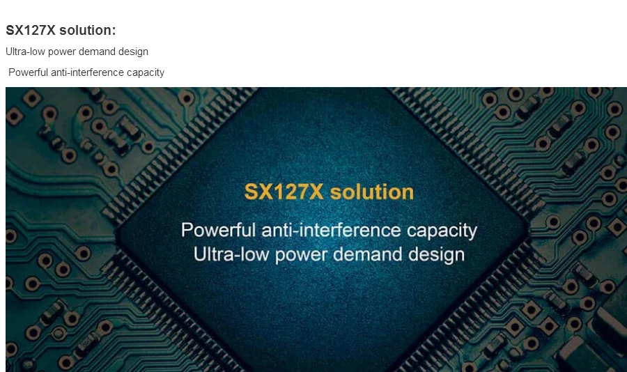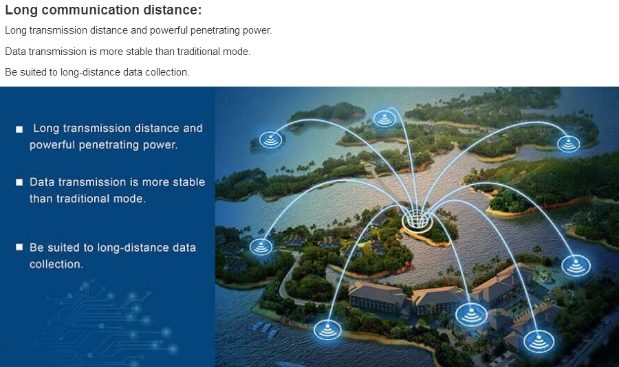 3500 meters. Test condition: Open area, clear weather, 20dBm transmitting power, 5dBi antenna gain, height is greater than 2 meters, 0.268K air rate. |