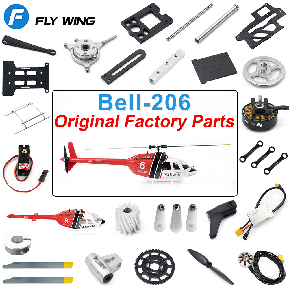 Fly Wing Bell-206 RC Helicopter Parts Drone Accessories Original Factory Installed Plate Tail Blade Main Blade Motor Feathering Shaft Servo ESC