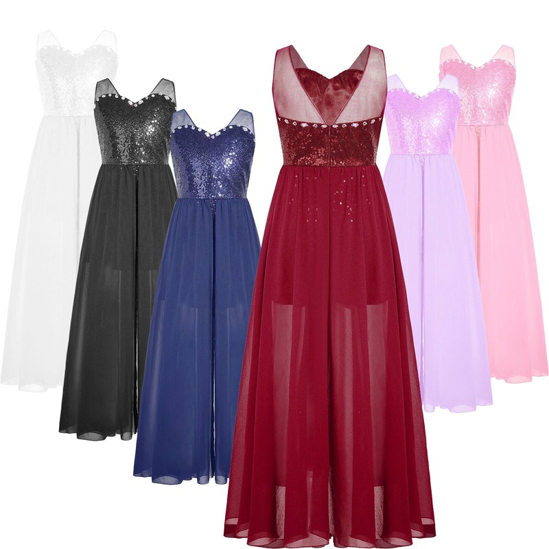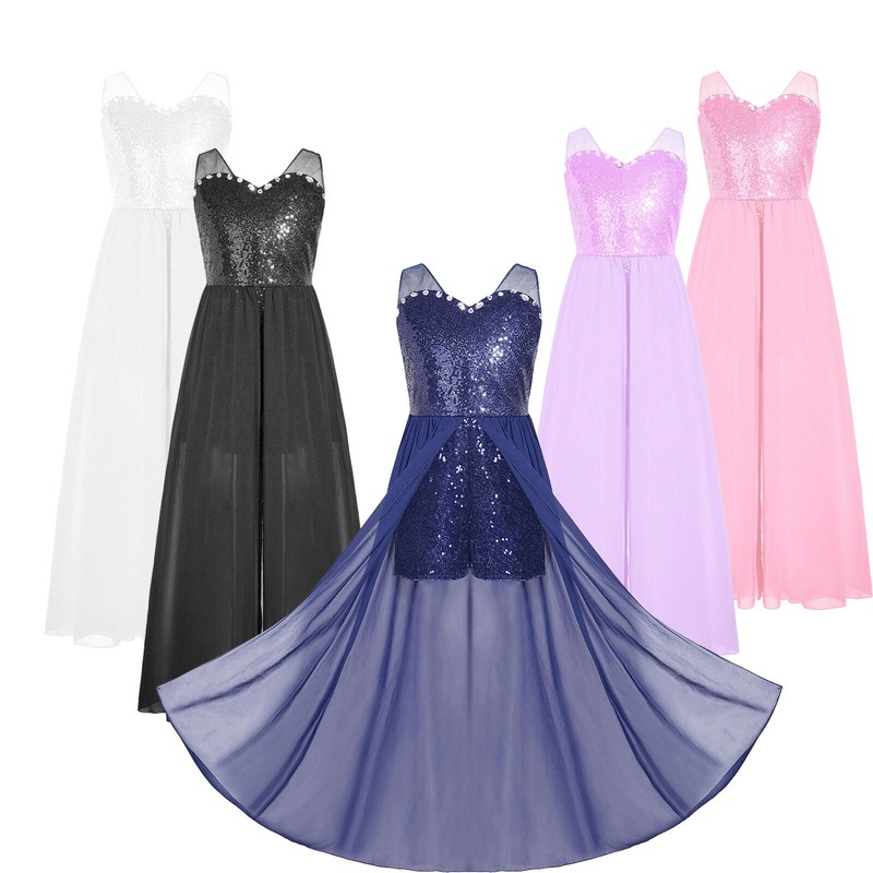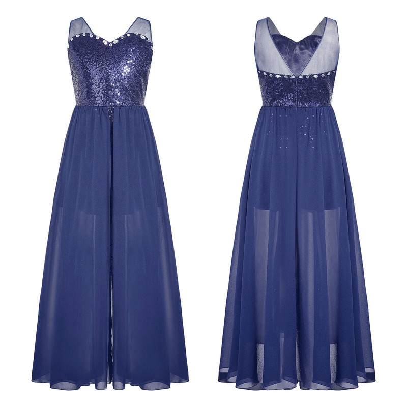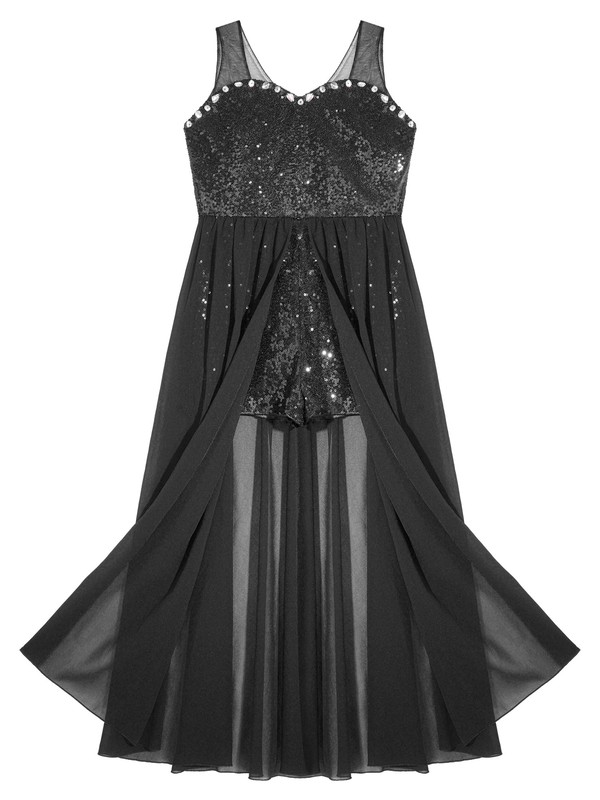Shiny sequin romper makes girl dazzling and stunning; with chiffon skirt makes your little princess more elegant and gorgeous.
