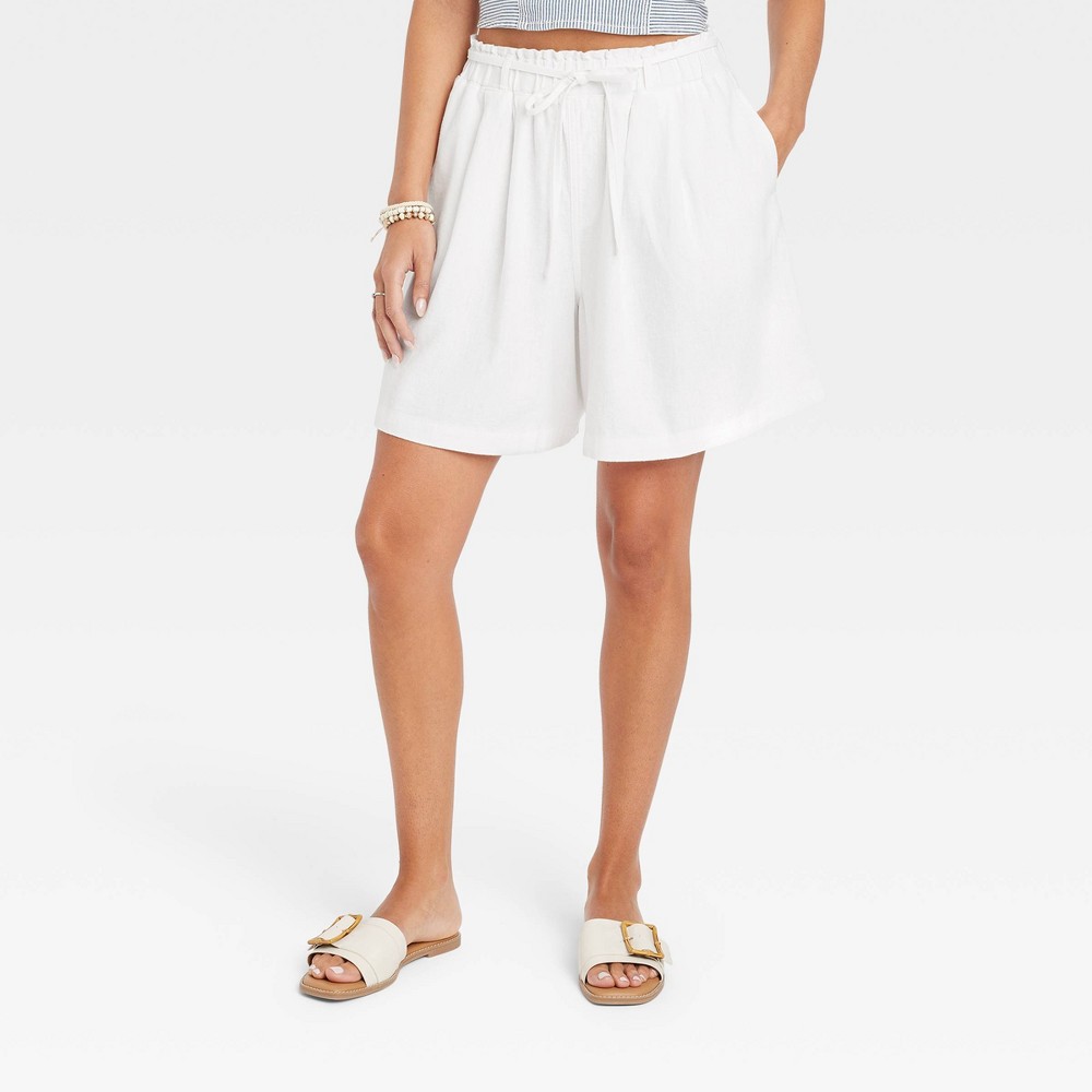 These Tie Waist Linen Mid-Rise Pull-On Shorts from Universal Thread? in a solid color pair well with a variety of tops. Made from lightweight linen fabric in a comfy casual fit, these mid-rise shorts feature functional seam pockets and a matching tie belt on the elastic waist for added flair. You can pair them with your favorite tee or any pair of sneakers to complete the warm-weather ensemble. Universal Thread?: The denim collection that's true to you.