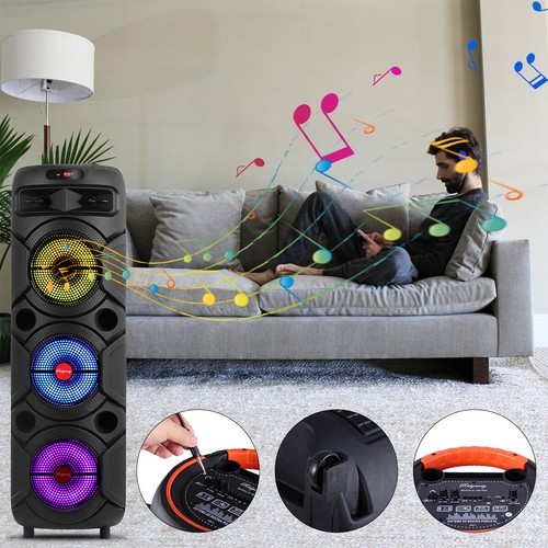 ✔️ TWS Function & Colorful Light Show :The pairing of two loud big bluetooth speakers are crazy, the 4000W stereo surround sound immediately invades your hearing. It can display 6 kinds of lighting effects jumping with the rhythm .The lights like flames and water can be switched back and forth, the colorful lights occupy your field of vision, and your heart beats wildly with the music. It's awesome Light Show!