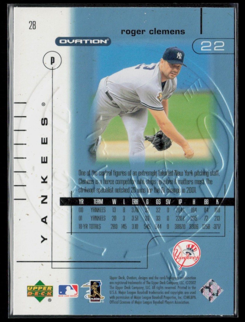 | 2002 Upper Deck Ovation Roger Clemens New York Yankees #28 |