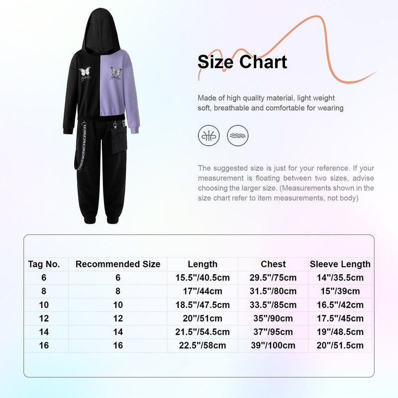 | Tag No. | Recommended Size | Hoodie Length | Chest | Sleeve | Pants Length | Pants Waist | Hip |