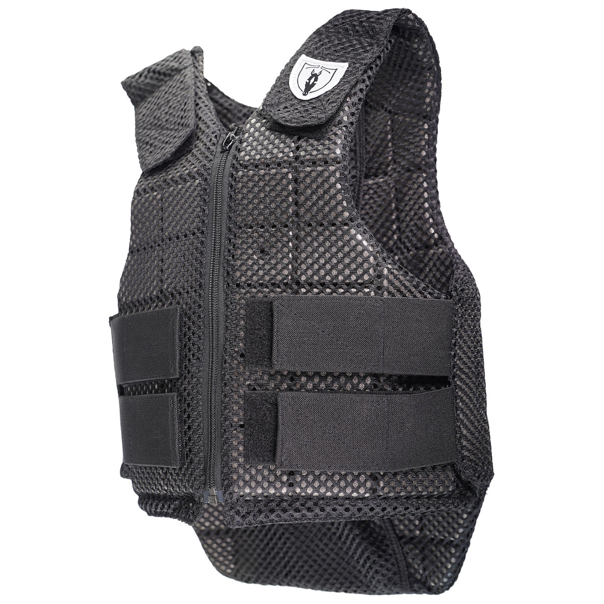 Die extrem leichte Sicherheitsweste ist besonders für den Sport-, Turnier- und Freizeitreiter geeignet. Durch die einfach verstellbaren elastischen Klettverschlüsse und den einzelnen Parzellen ist eine hohe Bewegungsfreiheit gegeben. Die einzelnen Parzellen bieten hohe Flexibilität und können daher bei einem Sturz das wichtige Abrollen garantieren. Ausgestattet ist die Weste mit jeweils zwei seitlichen Klettverschlüssen und Schulterjustierung durch Klettverschluss. Die Weste entspricht dem Europäischen Sicherheitsnorm EN1621-2:2014 Level 1. Überzug in blickdichtem Meshbezug.
