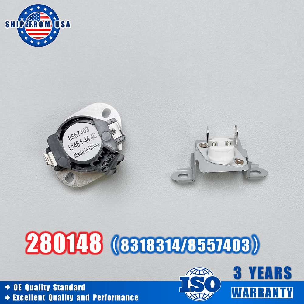 MODEL NUMBER: 280148 dryer thermal fuse replacement kit, including 1 pc 8557403 high limit thermostat and 1 pc 8318314 thermal fuse cutoff. ( High limit safety thermostat has built in thermistor sensor ).