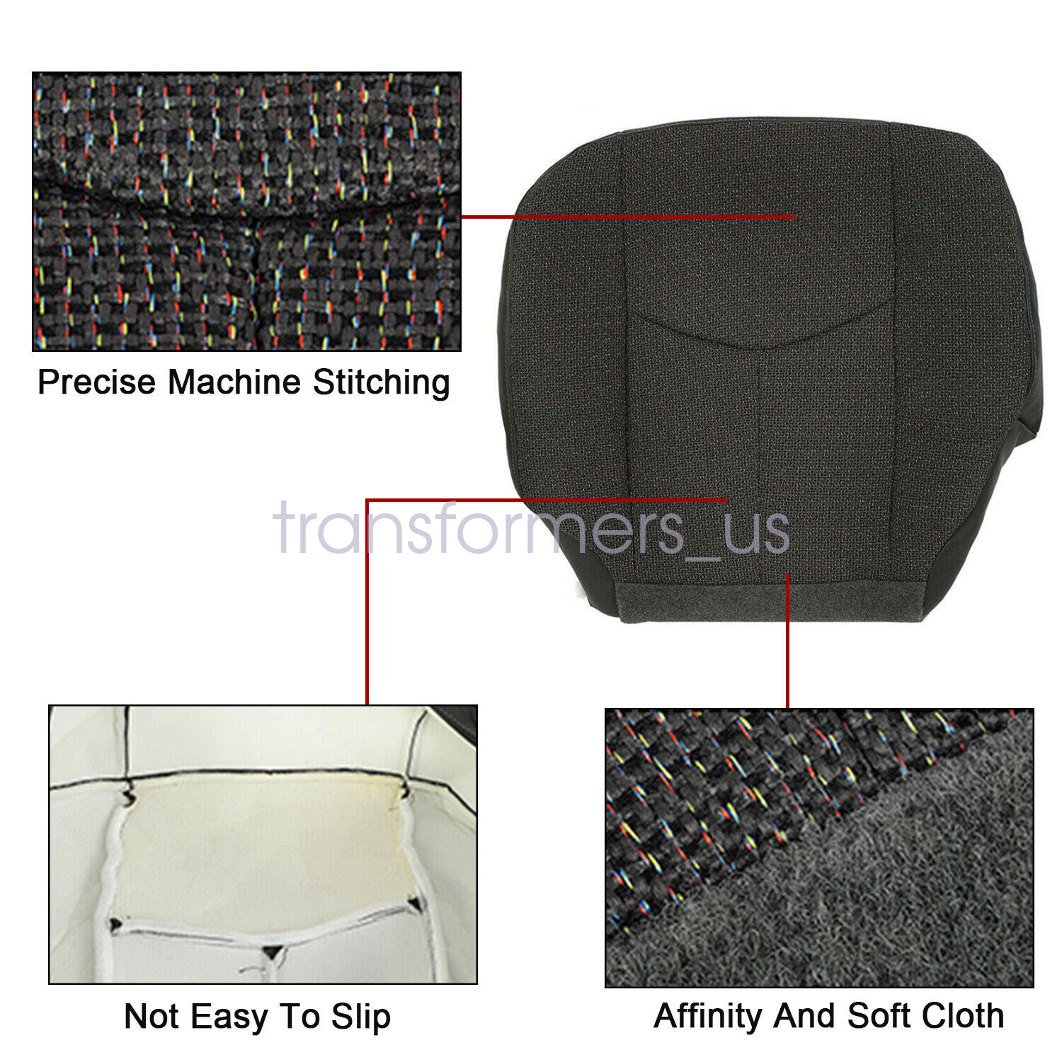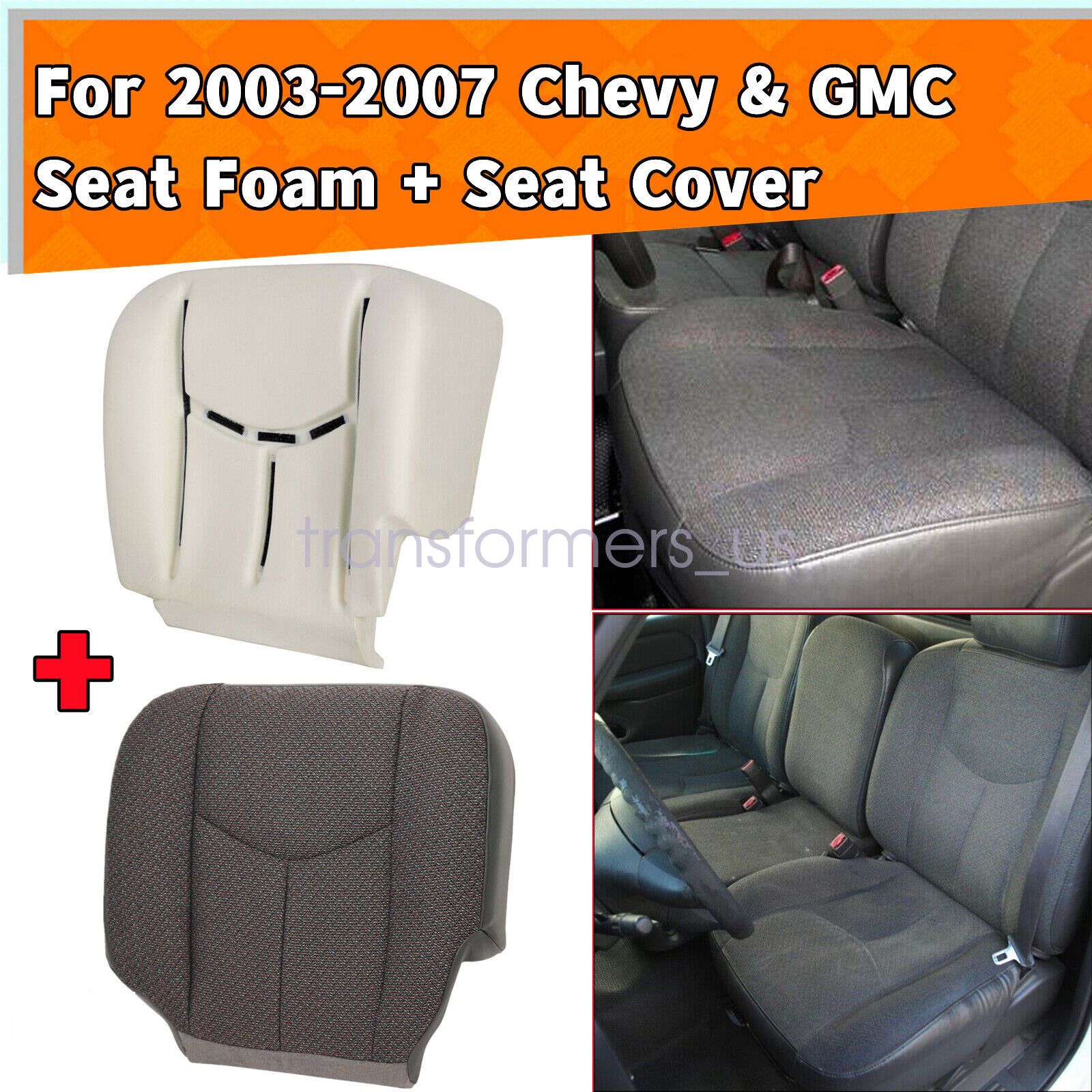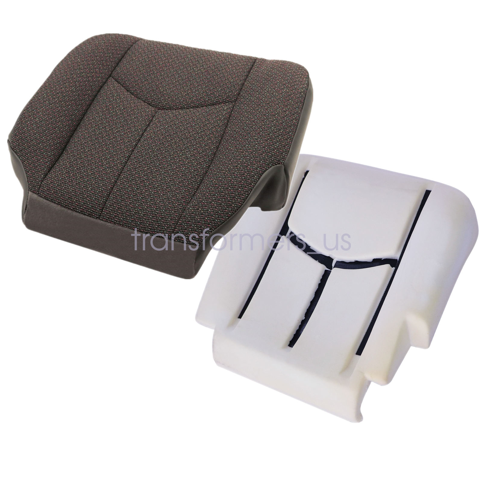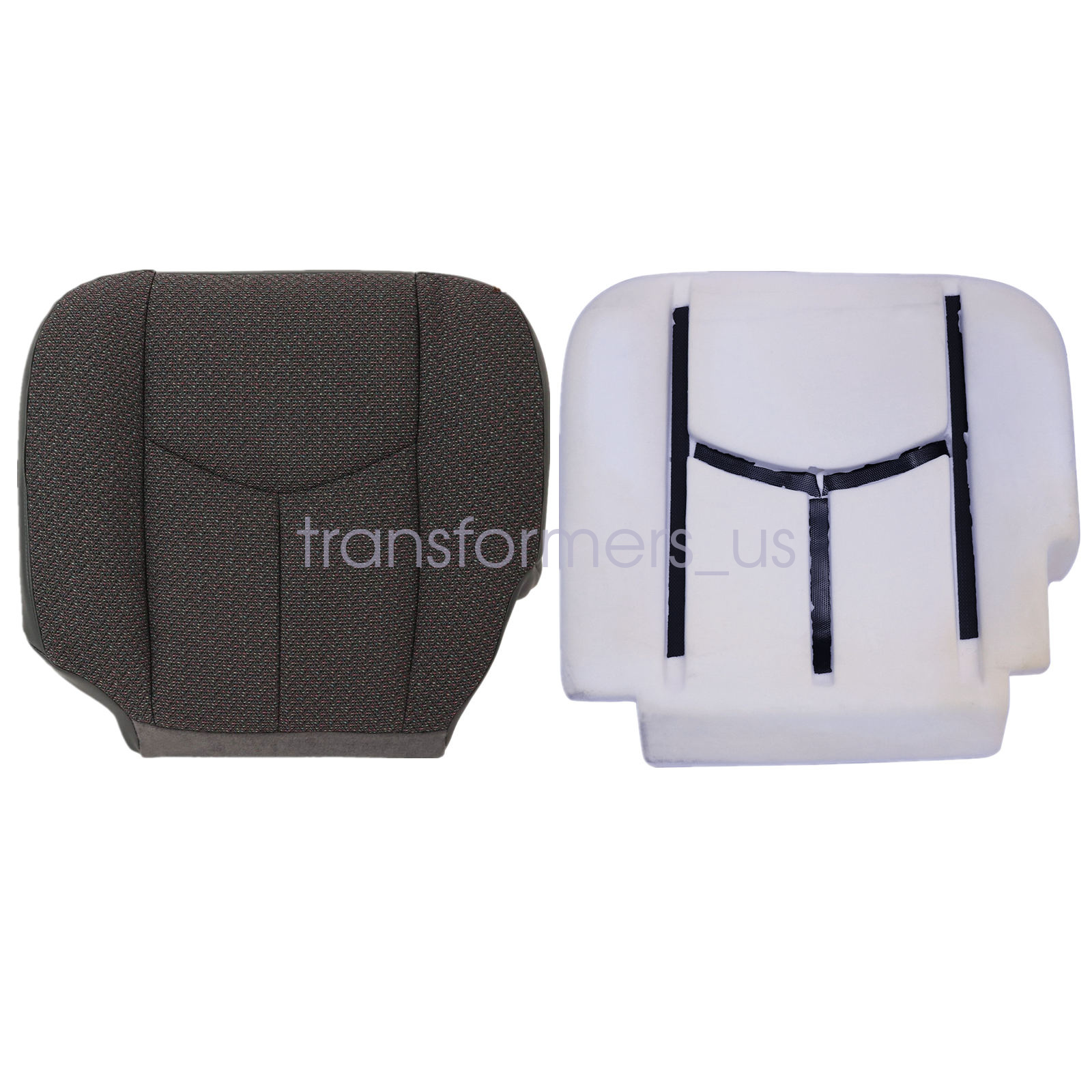 Driver Bottom Cloth Seat Cover Dark Pewter Gray & Foam Cushion For 2003-2007 Chevy Silverado GMC Sierra 1500 2500HD 3500 Single-Cab, Quad-Cab, Crew-Cab, Work Truck, Base, WT