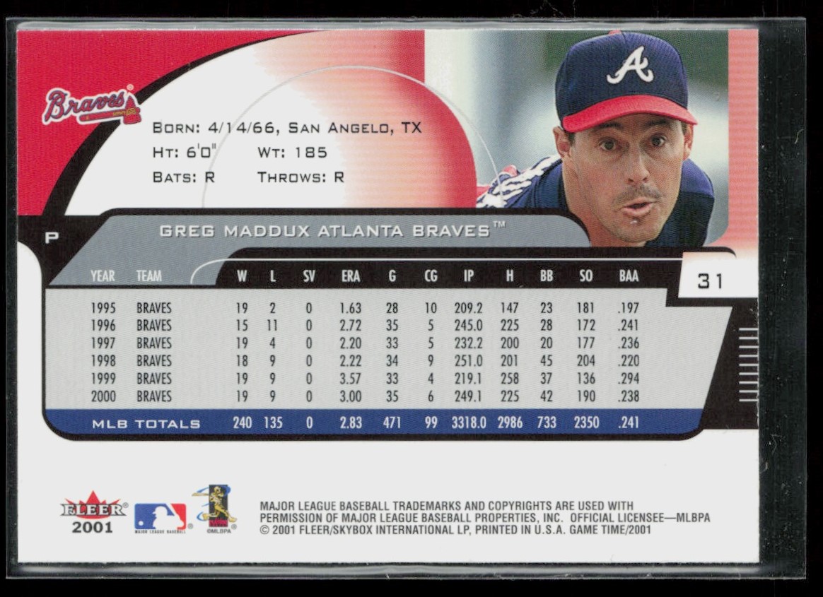 | 2001 Fleer Game Time Greg Maddux Atlanta Braves #31 |