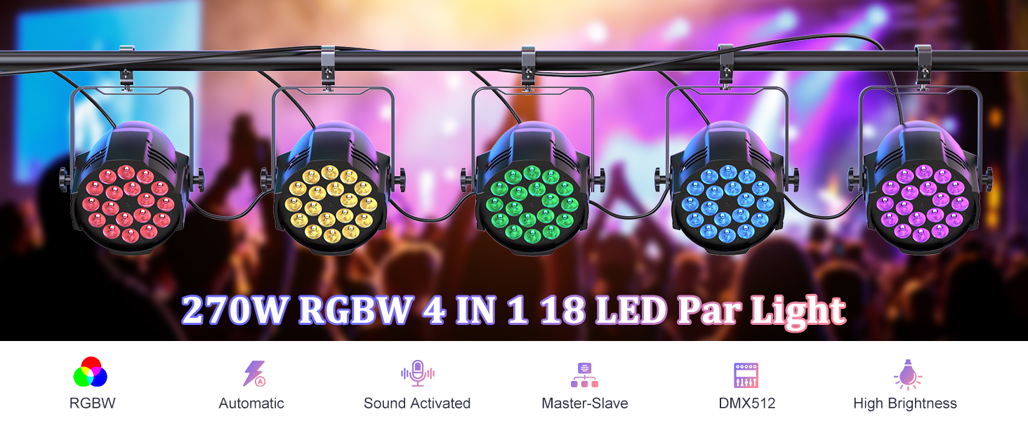 GDJRTTK 270W 18LED PAR Can Light RGBW DMX Wash Beam Effect Light DJ Stage Lighting