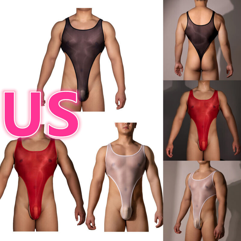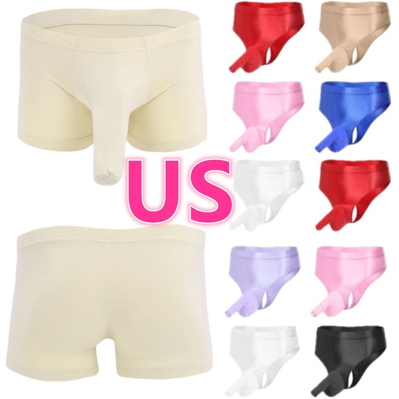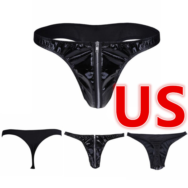 Mens Glossy Bulge Pouch Thongs Underwear Solid Color Low Waist Briefs Swimwear.