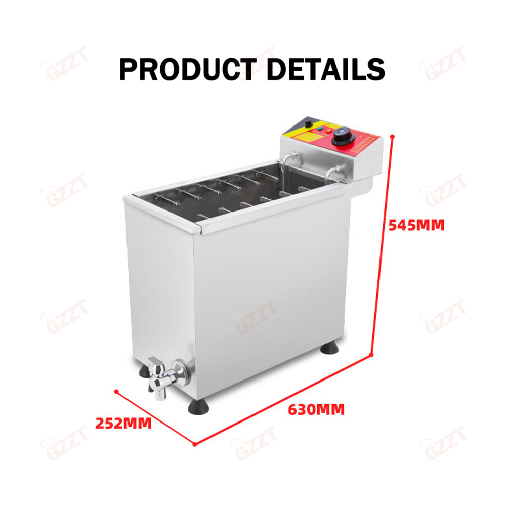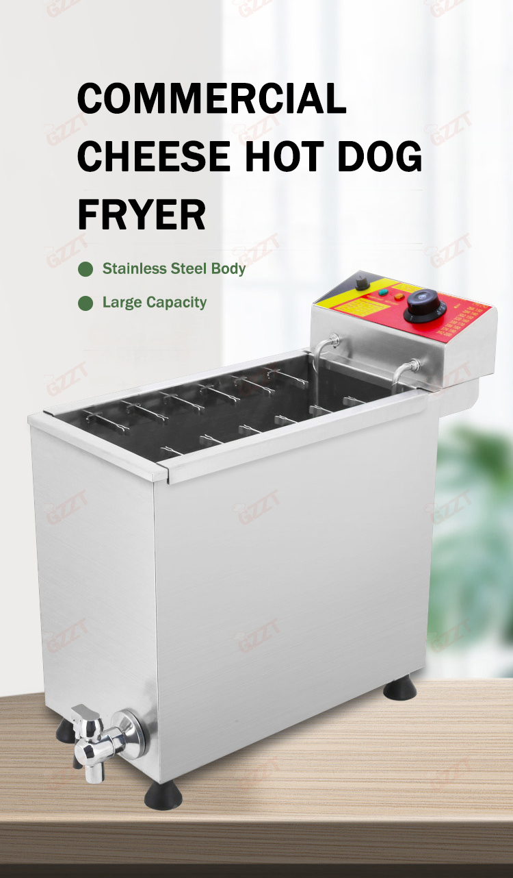 Product name cheese hot dog fryer machine Model:IT-HF-3-E Volts:110V-220V/50Hz-60Hz Power: 3KW Capacity: 25L Material: Stainless steel(#201) Dimensions(mm): 630*252*545 Net weight: 13kg Model: IT-HF-3G Volts: Gas Type Capacity: 21L Material: Stainless steel(#201) Dimensions(mm): 250*580*460 Net weight: 13kg