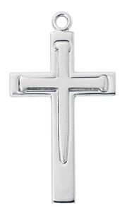 Embrace profound faith with this meaningful sterling silver cross pendant. The polished silver features a subtle nail accent, symbolizing sacrifice and devotion. Measuring a comfortable 1.25" long, it hangs elegantly from a 24" chain for everyday wear or special occasions. Arrives in a deluxe gift box, making it a thoughtful present for yourself or loved ones.