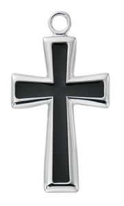 Embrace a contemporary take on faith with this striking sterling silver cross. Bold lines and a sleek black fill create a modern statement piece, while the polished finish adds a touch of elegance. Measuring a comfortable size, it hangs effortlessly from an 24" chain for everyday wear. Arrives in a deluxe gift box, making it a perfect present for yourself or a loved one.