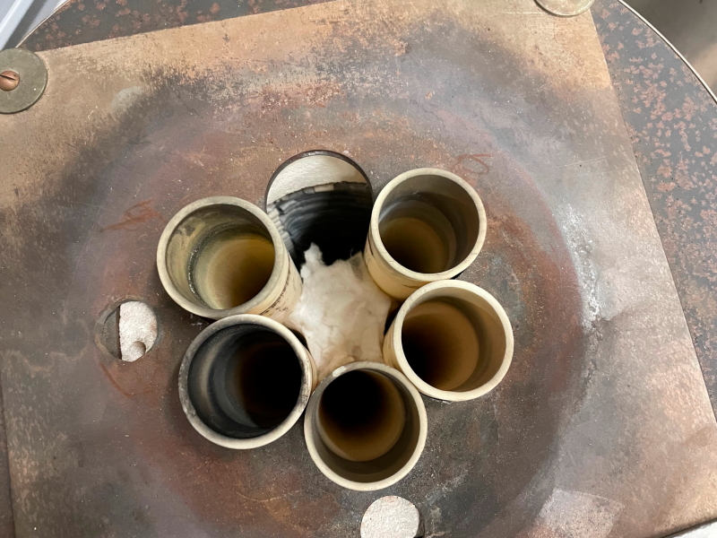 This is a used 5" x 24" Mellen tube furnace. This is the bare furnace with no control system. Please note this unit is 107 Volts nominal and would commonly be used with a transformer. The furnace has end plates that are installed with the purpose of holding 5 ceramic process tubes. The furnace could be used with this system in place if 5 tubes are required or the plates and tubes could be removed and it could be used as a standard 5" tube furnace. Units are in good condition but there are a few broken standoffs on the micarta covers.
