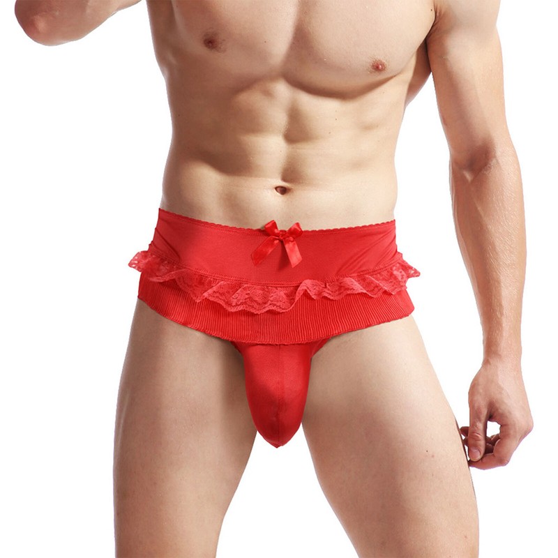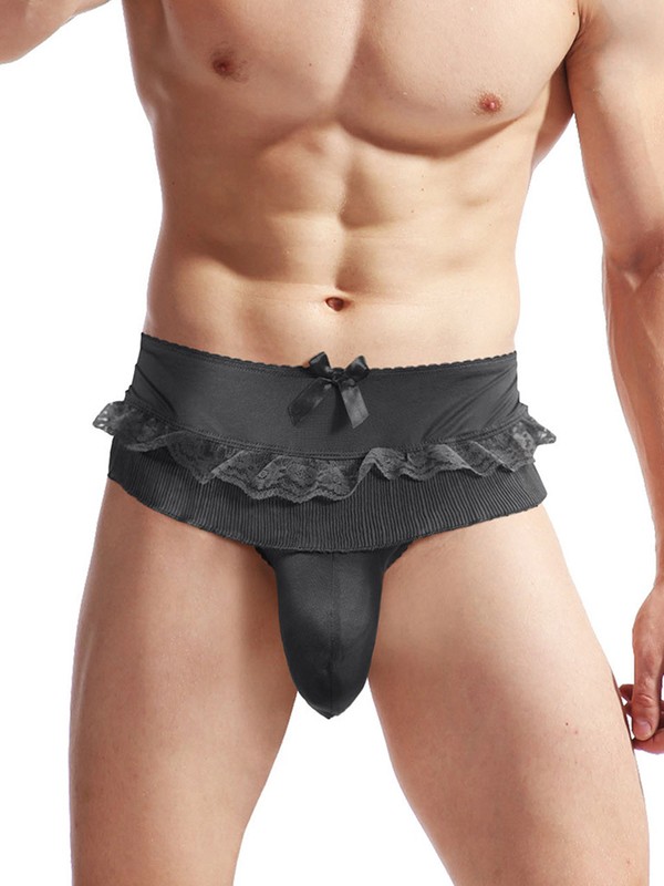 Men Sissy Satin Underwear Thong Lace Patchwork Panties G-string Briefs T-back.
