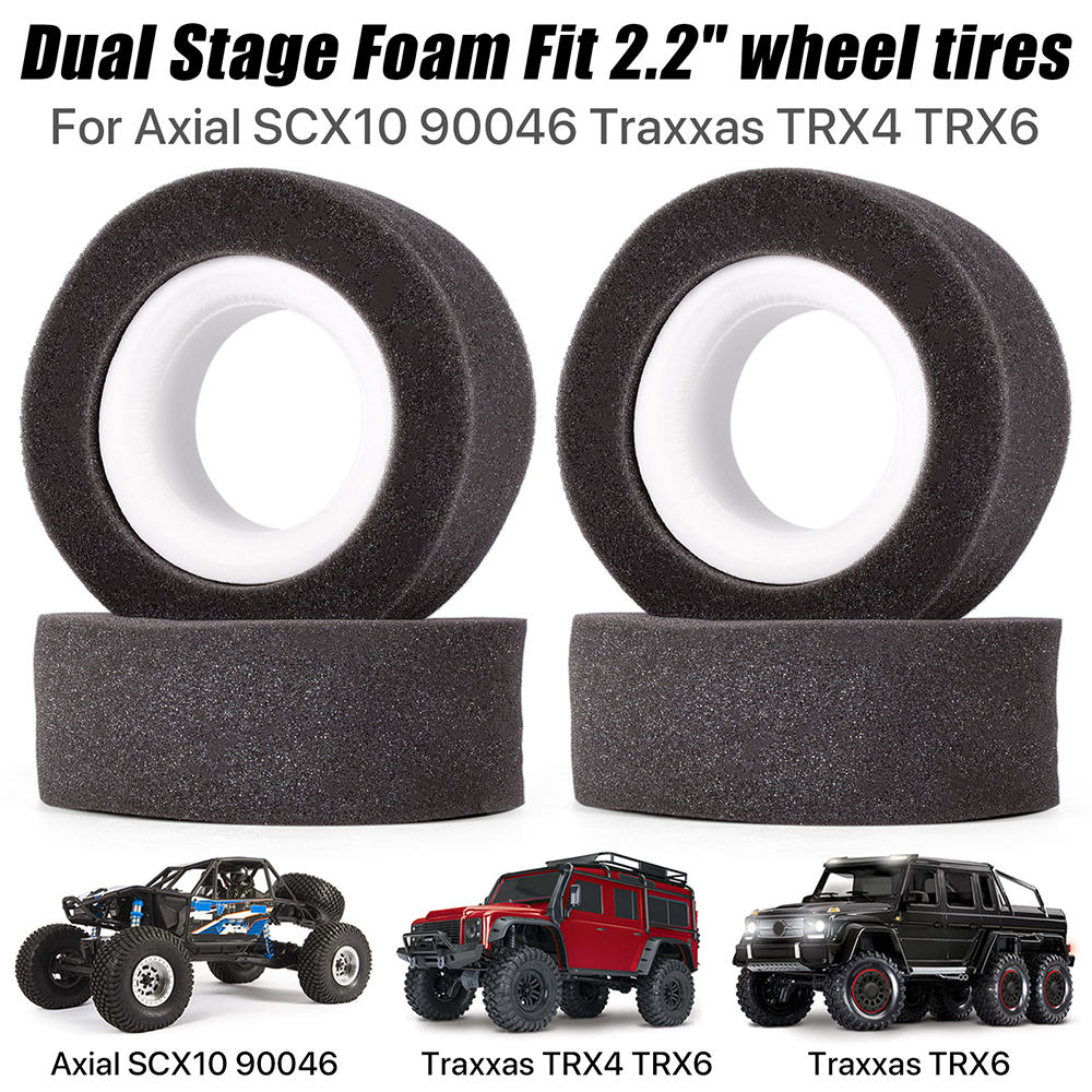 1.RC Crawler Parts 1/10 : The dual stage foam perfect fit 2.2" wheel tires for Axial SCX10 90046 Traxxas TRX4 TRX6 1/10 RC Crawler Car Upgrade Parts