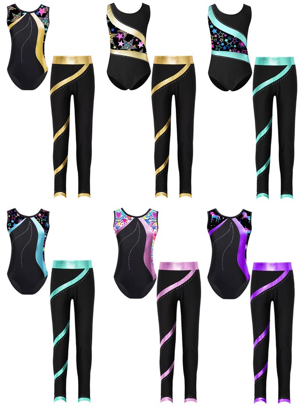 Sleeveless leotard for kids girls, patchwork design, various patterns are available.