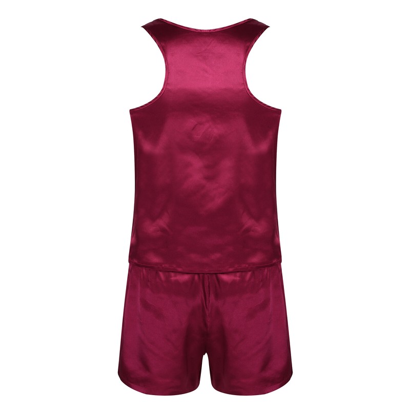 Men's Silk Satin Sleeveless Tank Tops Shorts Pants Soft Sleepwear Nightgown Set