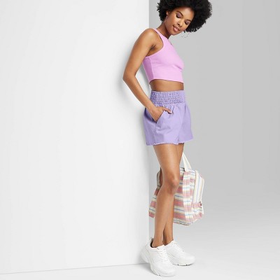 Woven pull-on shorts from Wild Fable? in a solid hue with fringed hems. Made from lightweight cotton with spandex. Tailored with a high-rise, relaxed-fit silhouette. Smocked waistband completes the design. If you?re not satisfied with any Target Owned Brand item, return it within one year with a receipt for an exchange or a refund. Wild Fable?: A look for every story.