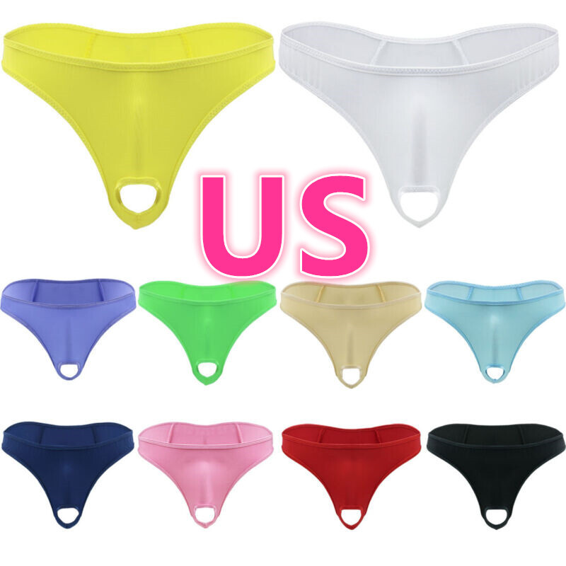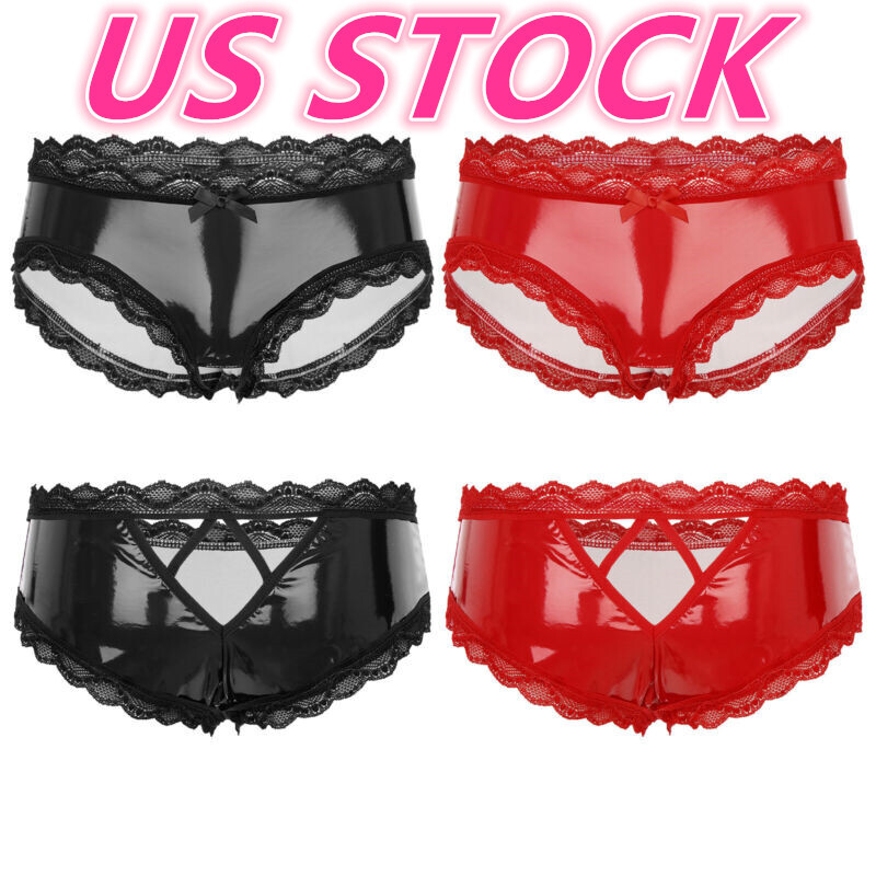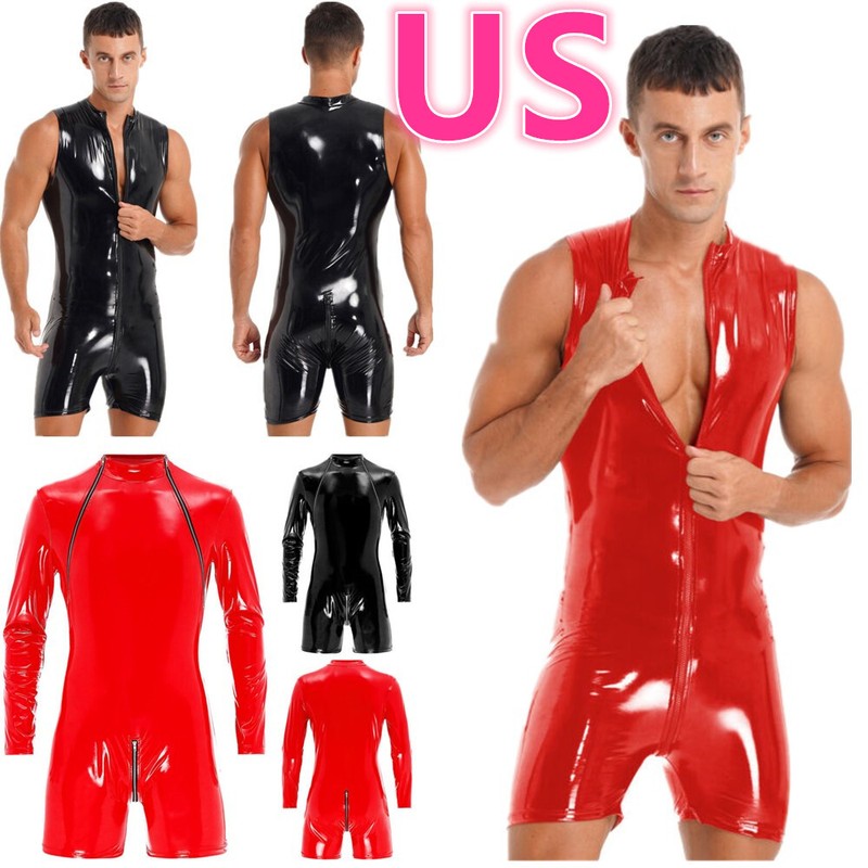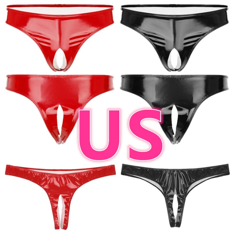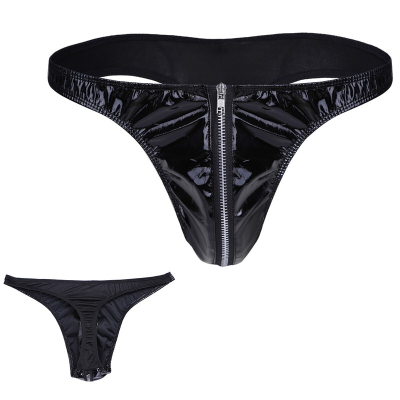 US Men Leather Panties Zipper Front Bulge Pouch Briefs G-string Thongs Underwear