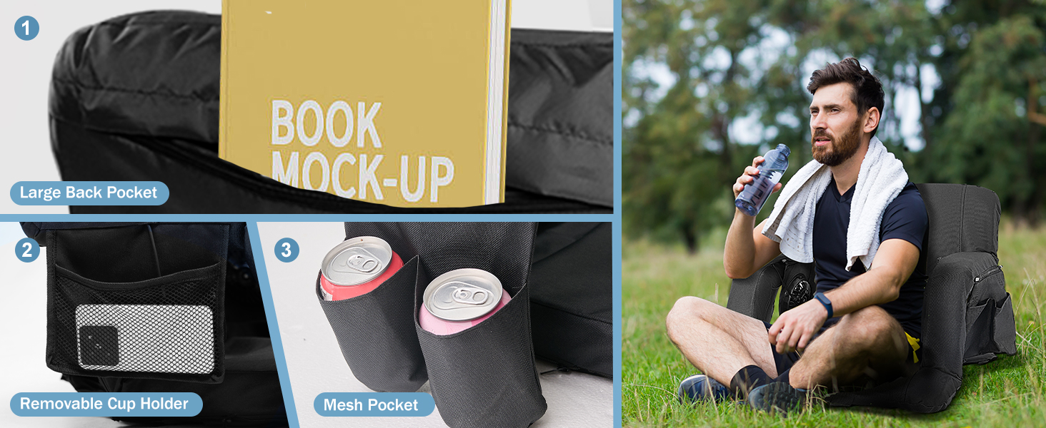 Portable and Large Pocket: this extra wide cooling stadium seat cushion is suitable for sports stands, lightweight and foldable, and comes with a carry bag, which can be carried with you; There is an extra large pocket behind the seat back, which is convenient for storing your items, including mobile phones, sunglasses, etc. There is a pocket at the USB port to place the power bank
