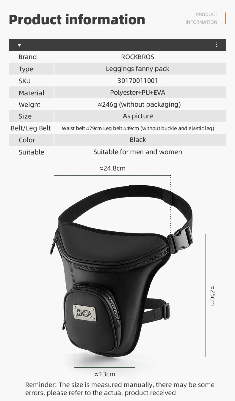 Leg straps is about 49cm (excluding buckle legs with elasticity)